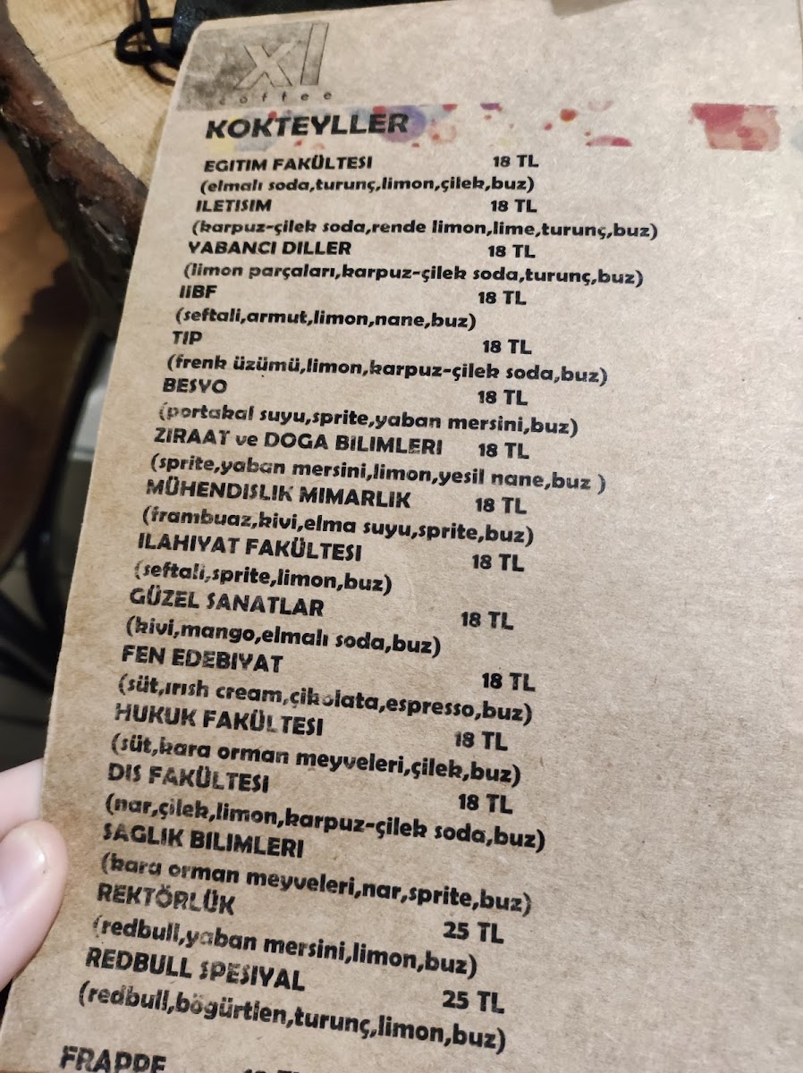 XL coffee Menu